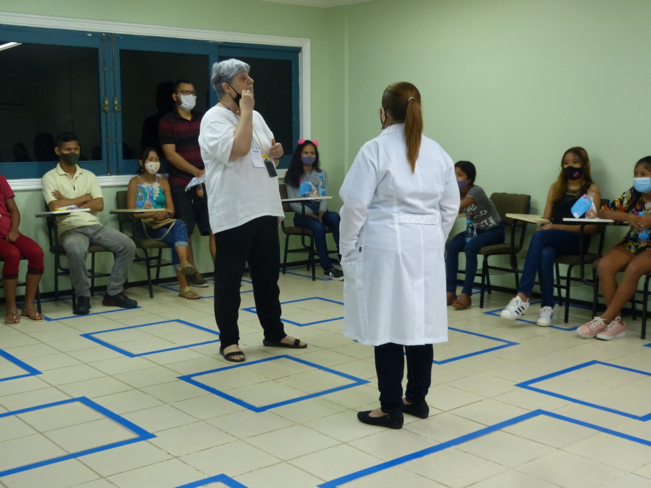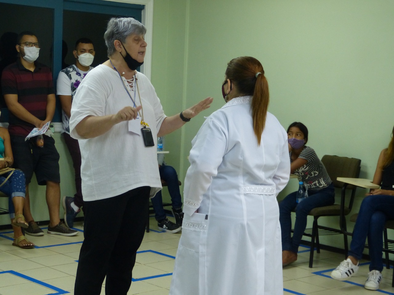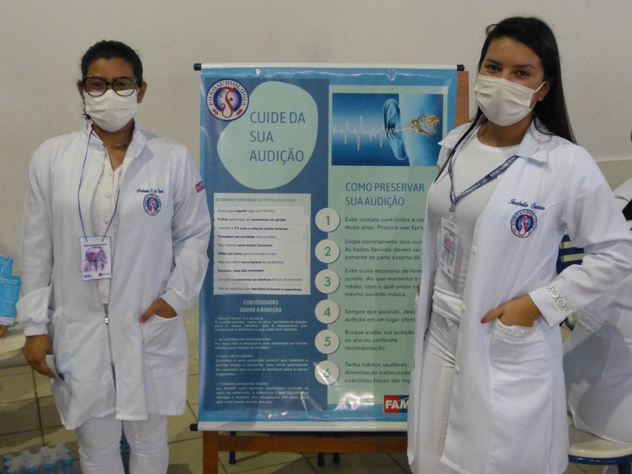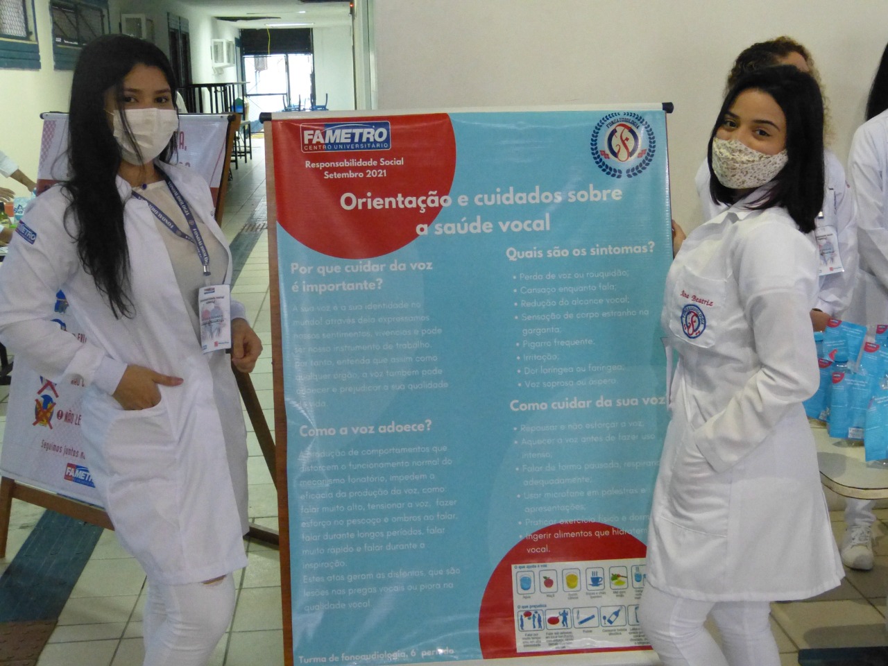 Já o curso de Fonoaudiologia orientou a comunidade sobre os cuidados com a voz, trouxe alguns cuidados para ação social, como: cuidados com audição, linguagem corporal, articulação da fala, leitura e escrita, para prevenção da saúde, teve ações de avaliação e encaminhamentos para às clinicas da instituição. Na ação social os alunos distribuíram água e maçã, que serve para hidratar à voz “ A nossa voz é o nosso instrumento de trabalho, água e maçã é de suma importância para aquecer e hidratar às cordas vocais, para não ter futuras patologias desagradáveis, então comer frutas e beber água ajuda muito na hidratação da voz“, destacou Amanda Brito, estudante do 6° período de fonoaudiologia.